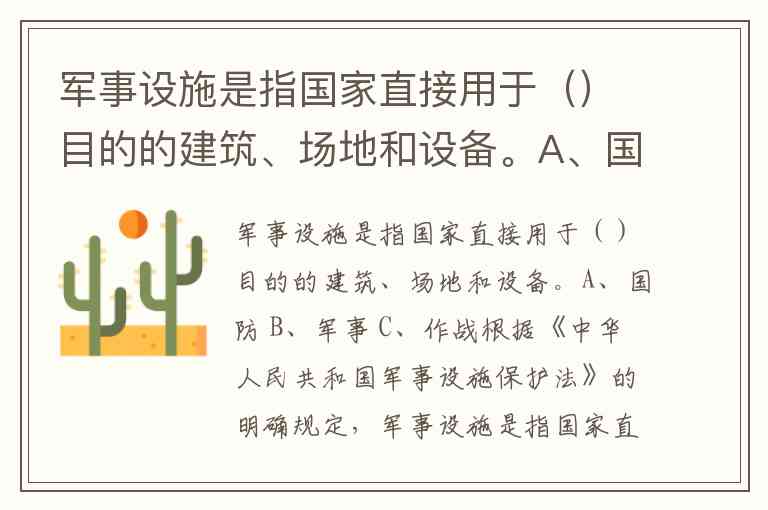 军事设施是指国家直接用于()目的的建筑、场地和设备。A、国防 B、军事 C、作战