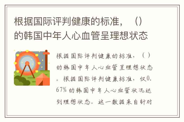 根据国际评判健康的标准,()的韩国中年人心血管呈理想状态。