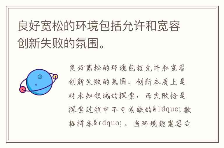 良好宽松的环境包括允许和宽容创新失败的氛围。