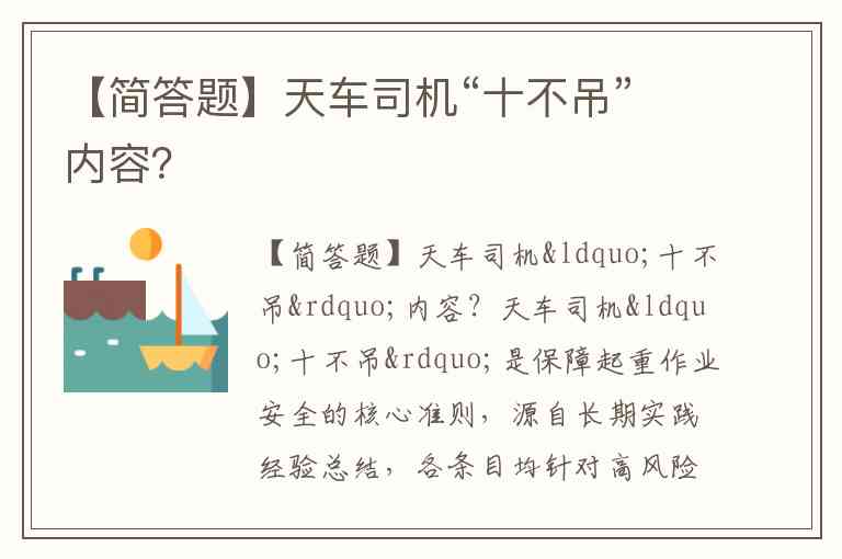 天车司机“十不吊”是保障起重作业安全的核心准则,源自长期实践经验总结,各条目均针对高风险场景设置明确禁区。以下为通用性强且广泛认可的标准内容: