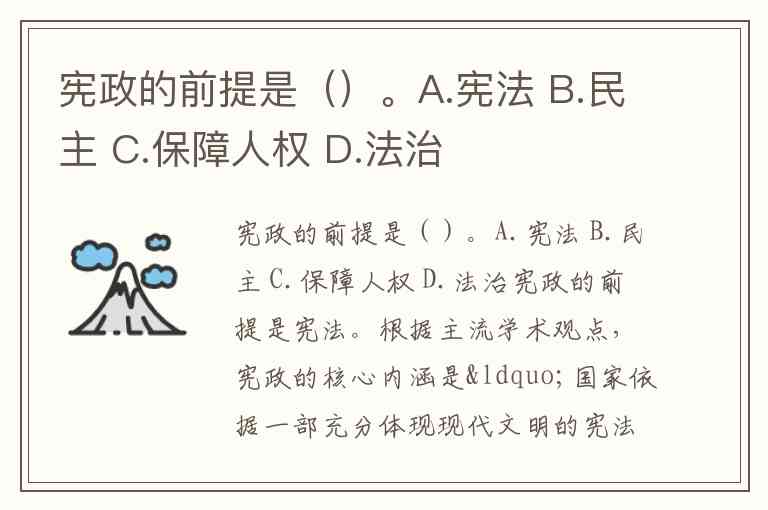 宪政的前提是()。A.宪法 B.民主 C.保障人权 D.法治