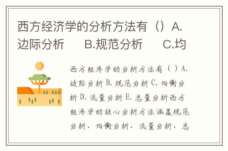 西方经济学的分析方法有()A.边际分析 B.规范分析 C.均衡分析 D.流量分析 E.总量分析
