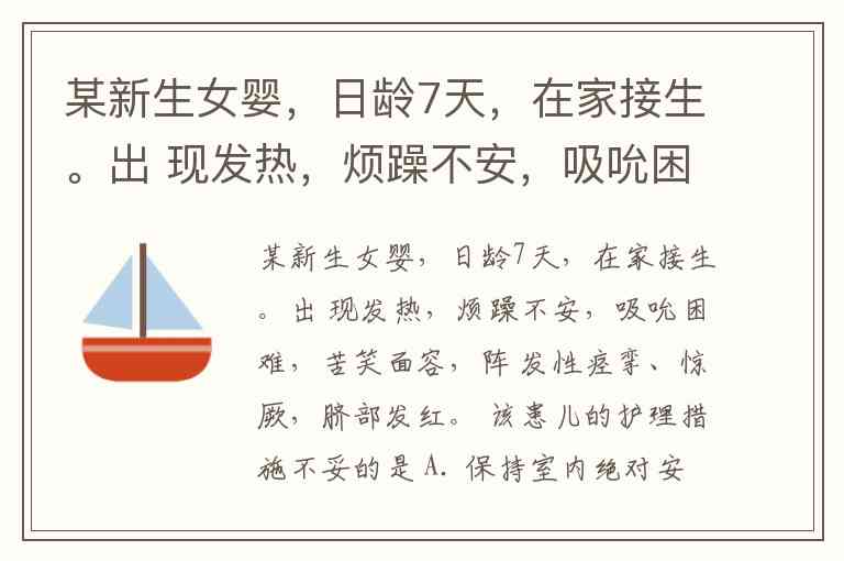 某新生女婴,日龄7天,在家接生。出 现发热,烦躁不安,吸吮困难,苦笑面容,阵 发性痉挛、惊厥,脐部发红。 该患儿的护理措施不妥的是 A. 保持室内绝对安静 B. 保持呼吸道通畅 C. 保证能量供应 D. 每2小时测体温、心率 E. 防止发生骨折
