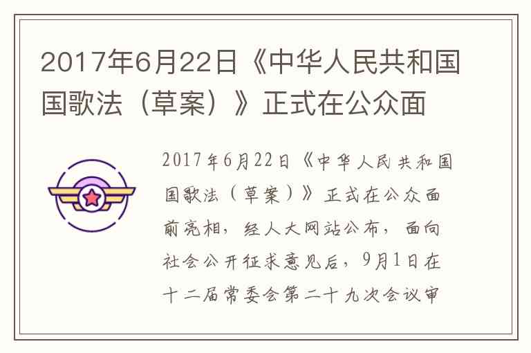 《中华人民共和国国歌法》的立法过程生动体现了我国社会主义民主政治的运作逻辑与法治建设的核心价值。该法律从2017年6月22日草案首次亮相,到9月1日经十二届全国人大常委会第二十九次会议表决通过,再到10月1日正式施行,形成了"公众参与—人大审议—法律实施"的完整闭环。这一过程既彰显了立法的民主性根基,也强化了国家标志制度的法治化保障。