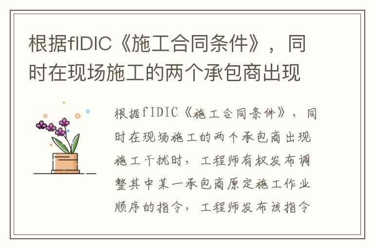 根据FIDIC《施工合同条件》,工程师调整承包商施工作业顺序的权力源于合同中的变更条款。这一结论可通过条款定义与实践应用两方面得到验证:
