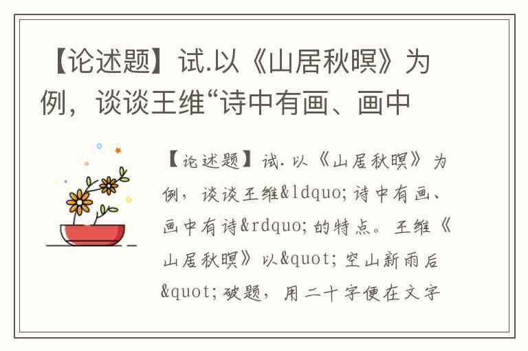 【论述题】试.以《山居秋暝》为例,谈谈王维“诗中有画、画中有诗”的特点。