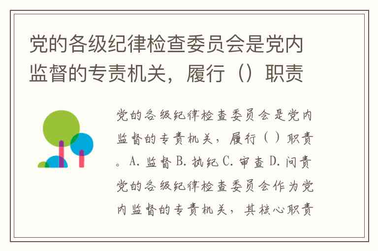 党的各级纪律检查委员会是党内监督的专责机关,履行()职责。A.监督 B.执纪 C.审查 D.问责
