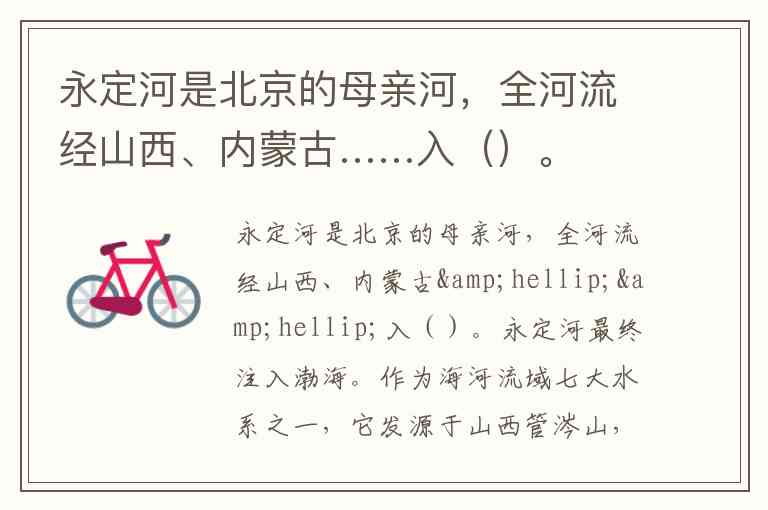 永定河是北京的母亲河,全河流经山西、内蒙古……入()。