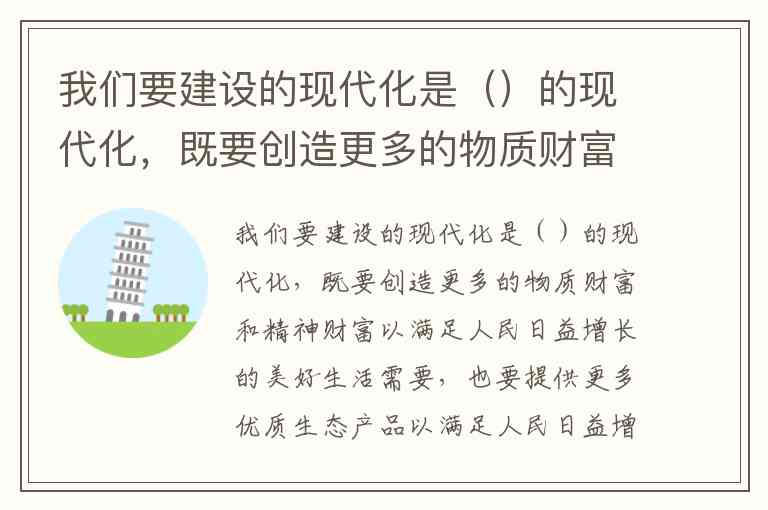 我们要建设的现代化是()的现代化,既要创造更多的物质财富和精神财富以满足人民日益增长的美好生活需要,也要提供更多优质生态产品以满足人民日益增长的优美生态环境需要。 A. 精神与物质都有 B. 人与自然和谐共生 C. 城市与农村共享 D. 全体人民共同富裕