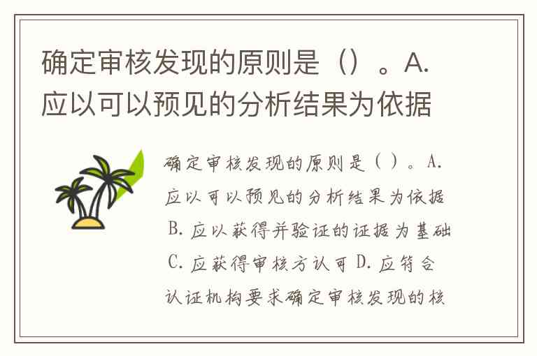 确定审核发现的原则是()。A.应以可以预见的分析结果为依据 B.应以获得并验证的证据为基础 C.应获得审核方认可 D.应符合认证机构要求