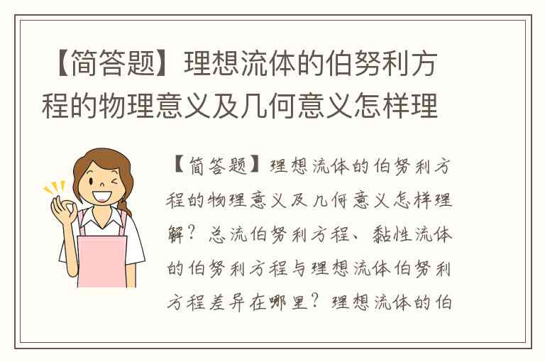 【简答题】理想流体的伯努利方程的物理意义及几何意义怎样理解?总流伯努利方程、黏性流体的伯努利方程与理想流体伯努利方程差异在哪里?