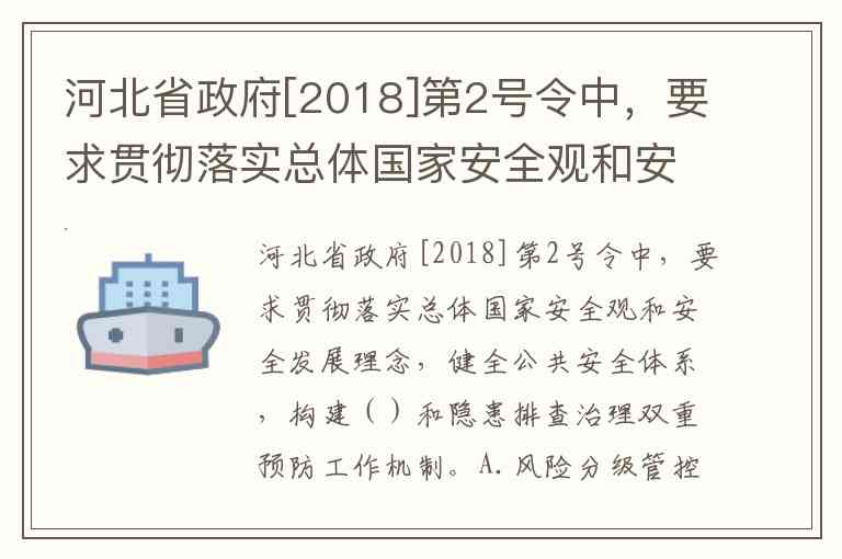河北省政府[2018]第2号令中,要求贯彻落实总体国家安全观和安全发展理念,健全公共安全体系,构建()和隐患排查治理双重预防工作机制。A.风险分级管控 B.双控 C.双重预防机制 D.能源隔离