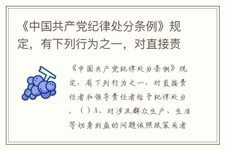 《中国共产党纪律处分条例》明确将漠视群众利益、损害党群关系的行为纳入纪律约束范畴。根据第九章“对违反群众纪律行为的处分”规定,题目中的A、B、C、D四个选项均属于应当对直接责任者和领导责任者给予处分的情形,具体条款对应《条例》第一百一十六条。