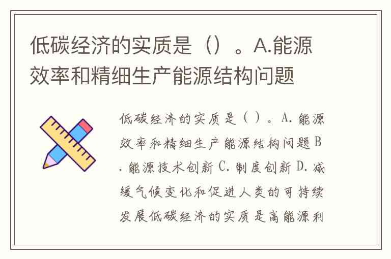 低碳经济的实质是高能源利用效率和清洁能源结构问题。这一结论在多份权威资料中被明确提及,例如文档1指出“低碳经济实质是高能源利用效率和清洁能源构造问题”,文档3和文档5也强调其核心在于通过技术与制度创新实现能源结构转型。