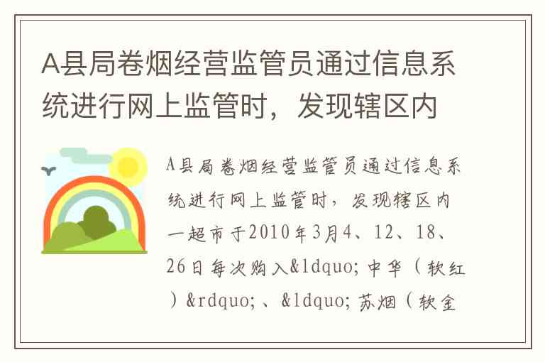 A县局卷烟经营监管员通过信息系统进行网上监管时,发现辖区内一超市于2010年3月4、12、18、26日每次购入“中华(软红)”、“苏烟(软金砂)”各5万支。A县局卷烟经营监管员在对此情况进行实地核查时,还发现该零售户的卷烟零售明码标价卡没有摆放到位。A县局内部专卖管理监督股就此两个情况下达了整改通知书,要求有关部门立即作出整改。A县局将这些工作情况整理后上报给了市局。根据A县局所属市公司规定,对零售户每次销售“软包中华”、“软包苏烟”不得超过3万支,则此类问题属于卷烟销售环节的哪种常见问题?