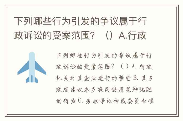 下列哪些行为引发的争议属于行政诉讼的受案范围?()A.行政机关对某企业进行的警告 B.某乡政府建议本乡农民使用某种化肥的行为 C.劳动争议仲裁委员会根据《劳动法》的规定,对劳动争议进行仲裁的行为 D.某劳动局扣发某人抚恤金的行为