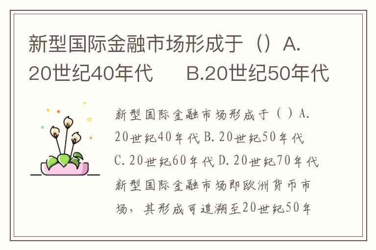 新型国际金融市场形成于()A.20世纪40年代 B.20世纪50年代 C.20世纪60年代 D.20世纪70年代