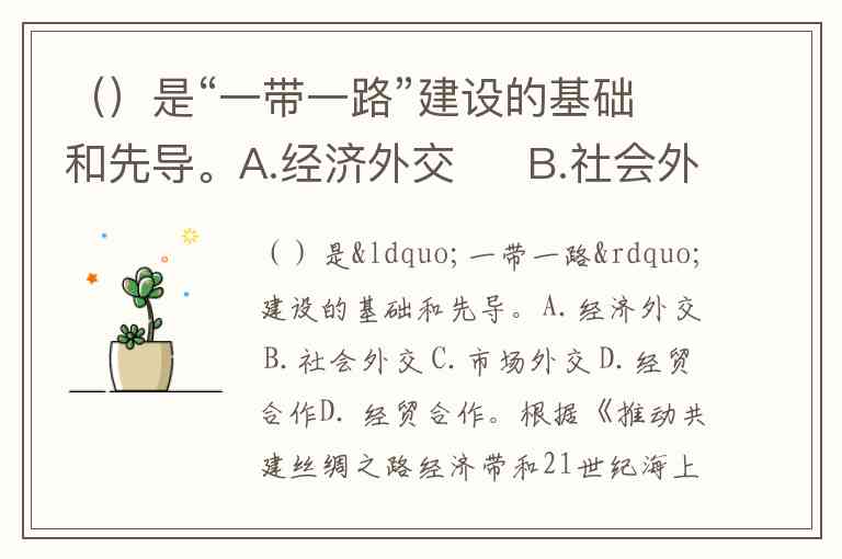 ()是“一带一路”建设的基础和先导。A.经济外交 B.社会外交 C.市场外交 D.经贸合作
