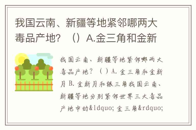这一地理特征在多项权威资料和考题中均有明确说明,例如青骄第二课堂的期末考试参考答案及专门的禁毒知识问答均指出正确答案为“金三角和金新月”。值得注意的是,世界第三大毒品产地“银三角”位于南美洲,与我国地理位置相距较远,因此不属于本题答案选项。