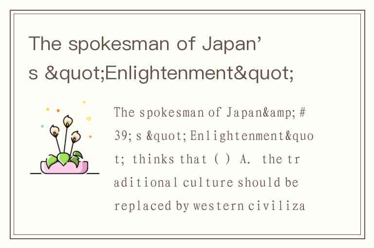 To determine the view of Japan's "Enlightenment" spokesman, we focus on the direct quotation in the text: "the Confucian civilization of the East seems to me to lack two things possessed by Western civilization: science in the material sphere and a sense of independence in the spiritual sphere." This indicates a critical stance toward Eastern Confucian civilization and an appreciation for Western civilization's strengths.