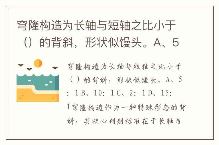 穹隆构造为长轴与短轴之比小于()的背斜,形状似馒头。A、5:1 B、10:1 C、2:1 D、15:1