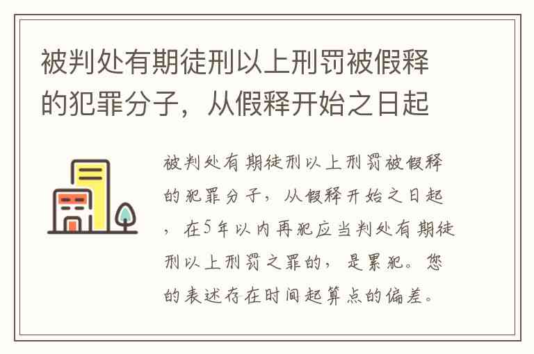 被判处有期徒刑以上刑罚被假释的犯罪分子,从假释开始之日起,在5年以内再犯应当判处有期徒刑以上刑罚之罪的,是累犯。