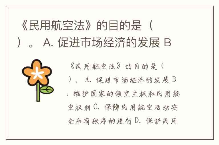 《民用航空法》的目的是( )。 A. 促进市场经济的发展 B. 维护国家的领空主权和民用航空权利 C. 保障民用航空活动安全和有秩序的进行 D. 保护民用航空活动当事人各方的合法权益 E. 促进民用航空事业的发展