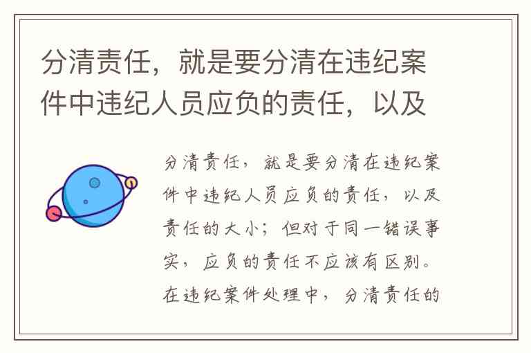 分清责任,就是要分清在违纪案件中违纪人员应负的责任,以及责任的大小;但对于同一错误事实,应负的责任不应该有区别。