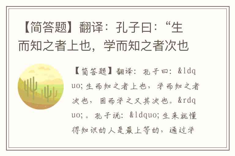 【简答题】翻译:孔子曰:“生而知之者上也,学而知之者次也,困而学之又其次也。”。