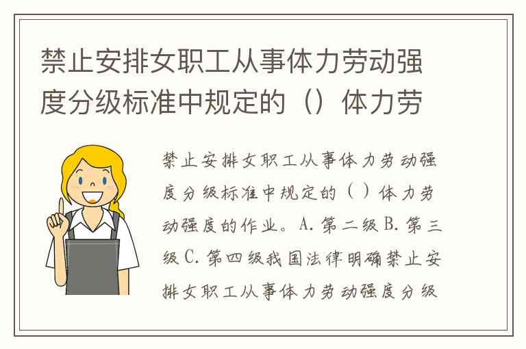禁止安排女职工从事体力劳动强度分级标准中规定的()体力劳动强度的作业。A.第二级 B.第三级 C.第四级
