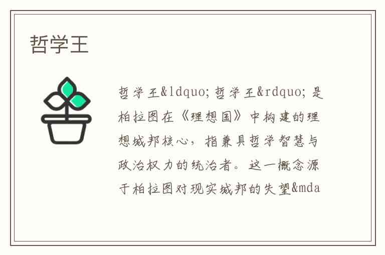 “哲学王”是柏拉图在《理想国》中构建的理想城邦核心,指兼具哲学智慧与政治权力的统治者。这一概念源于柏拉图对现实城邦的失望——他认为只有当“哲学家成为国王,或国王真正爱上哲学”,国家才能摆脱党派纷争与私欲泛滥,实现正义与全体幸福。其本质是让“洞见理念世界”的智者,用真理之光引导“困在可感世界幻觉”中的民众。
