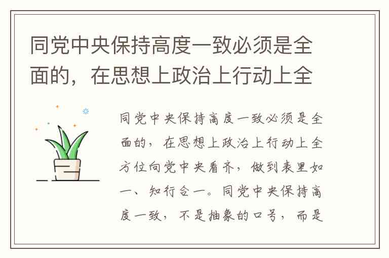 同党中央保持高度一致必须是全面的,在思想上政治上行动上全方位向党中央看齐,做到表里如一、知行合一。