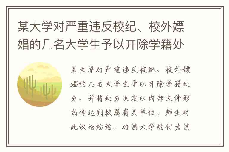该大学的行为属于行使教育管理权的正当行为,不构成侵权。从法律依据看,根据《普通高等学校学生管理规定》第五十二条,学生受到治安管理处罚且情节严重、性质恶劣的,学校可给予开除学籍处分。校外嫖娼若被公安机关处以治安拘留等处罚,即符合“受到治安管理处罚,情节严重”的情形,湖北大学等校校规也明确将此类行为列为开除学籍事由。