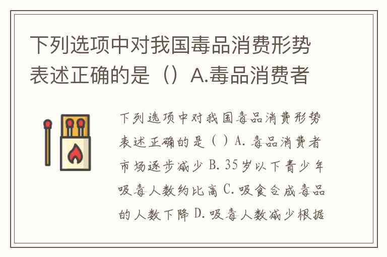 下列选项中对我国毒品消费形势表述正确的是()A.毒品消费者市场逐步减少 B.35岁以下青少年吸毒人数约比高 C.吸食合成毒品的人数下降 D.吸毒人数减少