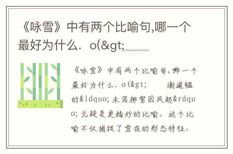 《咏雪》中有两个比喻句,哪一个最好为什么. o(>﹏﹏