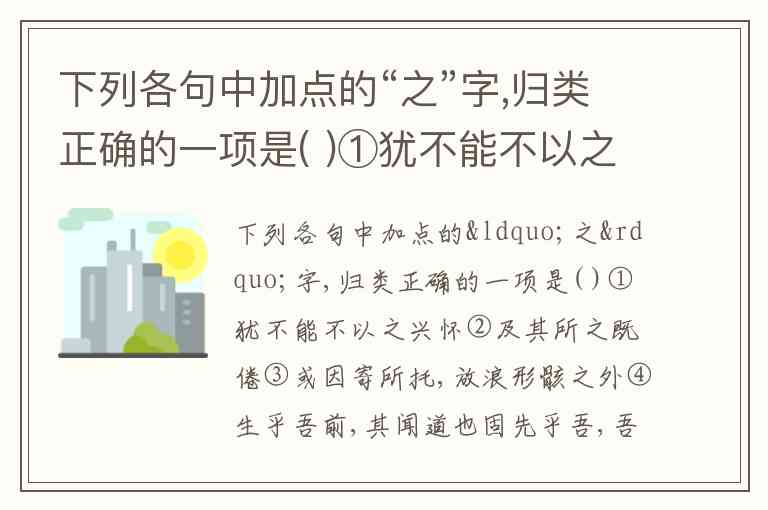 要准确归类文言虚词“之”,需先分析其在各句中的语法功能:代词、助词(含“的”、定语后置标志等)、动词等。以下逐句解析: