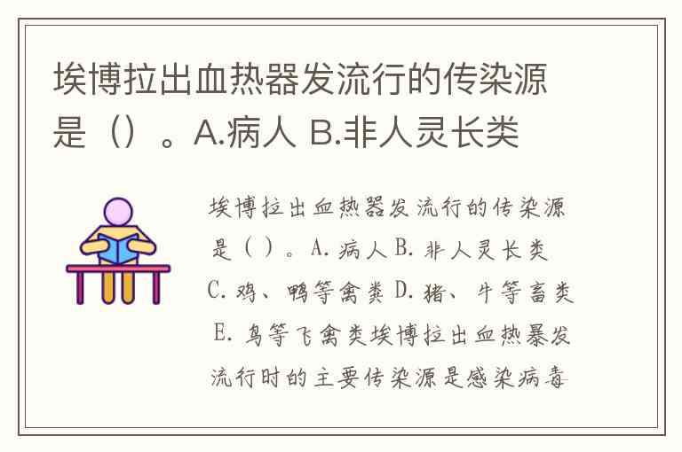 埃博拉出血热器发流行的传染源是()。A.病人 B.非人灵长类 C.鸡、鸭等禽粪 D.猪、牛等畜类 E.鸟等飞禽类