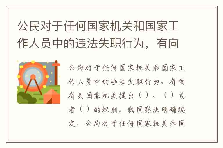 公民对于任何国家机关和国家工作人员中的违法失职行为,有向有关国家机关提出()、()或者()的权利。