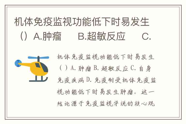 机体免疫监视功能低下时易发生()A.肿瘤 B.超敏反应 C.自身免疫疾病 D.免疫耐受