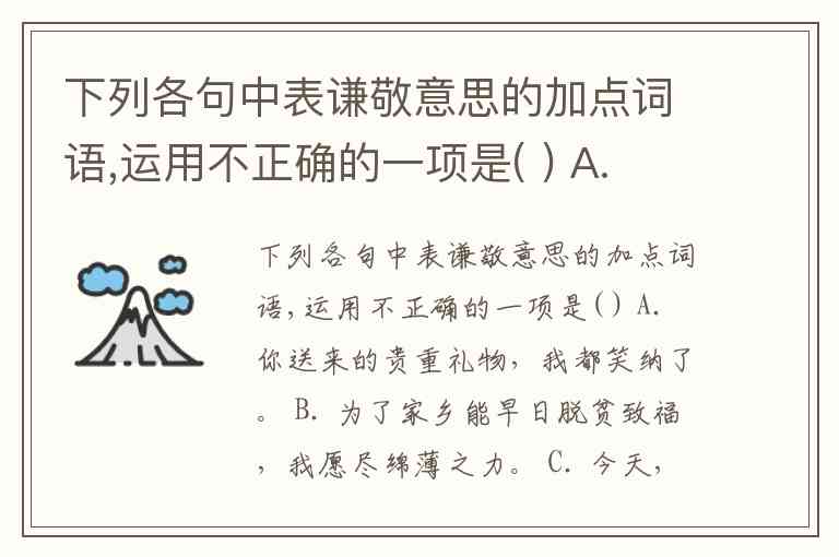 下列各句中表谦敬意思的加点词语,运用不正确的一项是( ) A. 你送来的贵重礼物,我都笑纳了。 B. 为了家乡能早日脱贫致福,我愿尽绵薄之力。 C. 今天,我们在国防大酒店,聊备薄酌,欢送李刚赴美留学。 D. 本学会于明晚举办文学创作研讨会,敬请王先生莅临指导。