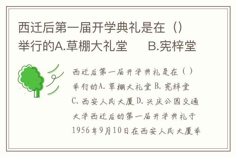 西迁后第一届开学典礼是在()举行的A.草棚大礼堂 B.宪梓堂 C.西安人民大厦 D.兴庆公园