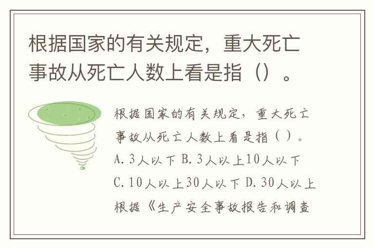 根据国家的有关规定,重大死亡事故从死亡人数上看是指()。A.3人以下 B.3人以上10人以下 C.10人以上30人以下 D.30人以上