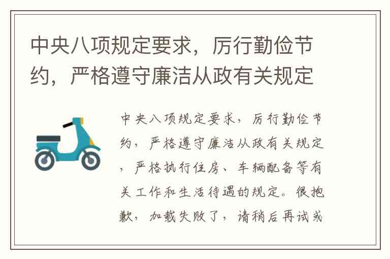 中央八项规定要求,厉行勤俭节约,严格遵守廉洁从政有关规定,严格执行住房、车辆配备等有关工作和生活待遇的规定。