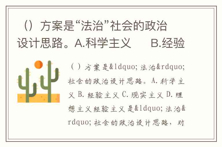 ()方案是“法治”社会的政治设计思路。A.科学主义 B.经验主义 C.现实主义 D.理想主义