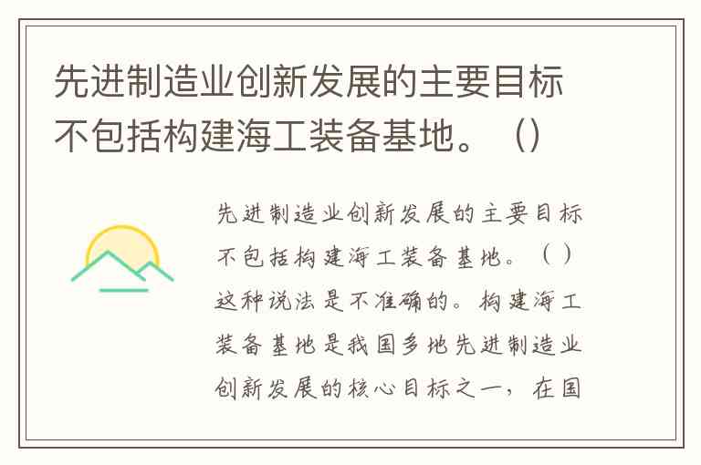 这种说法是不准确的。构建海工装备基地是我国多地先进制造业创新发展的核心目标之一,在国家和地方政策中均有明确体现。