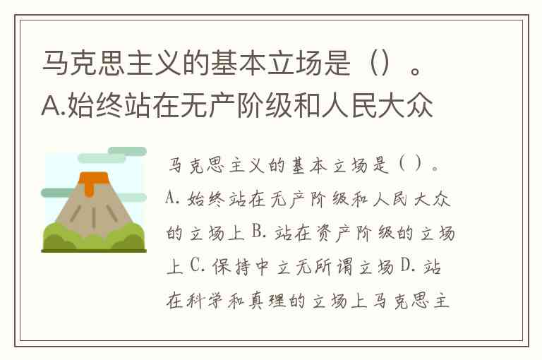 马克思主义的基本立场是()。A.始终站在无产阶级和人民大众的立场上 B.站在资产阶级的立场上 C.保持中立无所谓立场 D.站在科学和真理的立场上