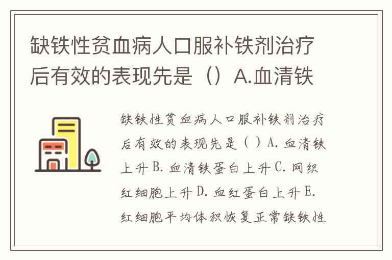缺铁性贫血病人口服补铁剂治疗后有效的表现先是()A.血清铁上升 B.血清铁蛋白上升 C.网织红细胞上升 D.血红蛋白上升 E.红细胞平均体积恢复正常
