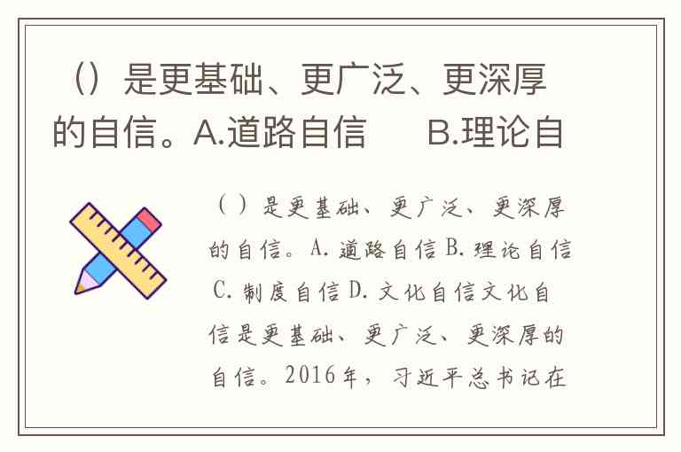 ()是更基础、更广泛、更深厚的自信。A.道路自信 B.理论自信 C.制度自信 D.文化自信