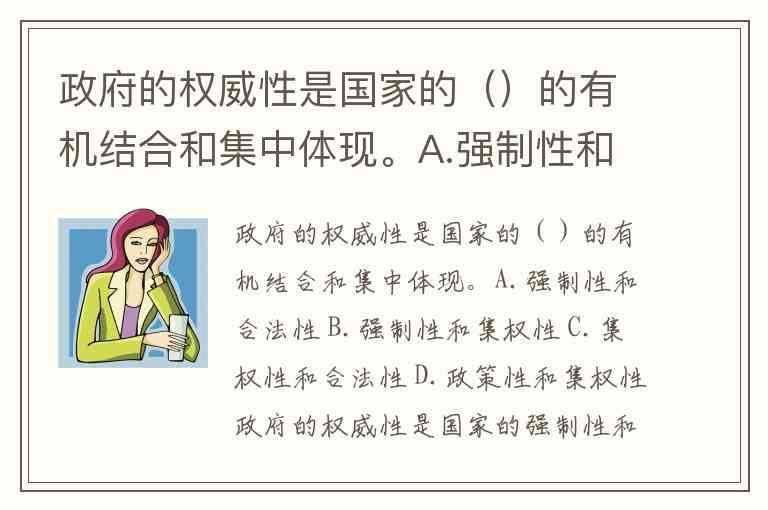 政府的权威性是国家的()的有机结合和集中体现。A.强制性和合法性 B.强制性和集权性 C.集权性和合法性 D.政策性和集权性