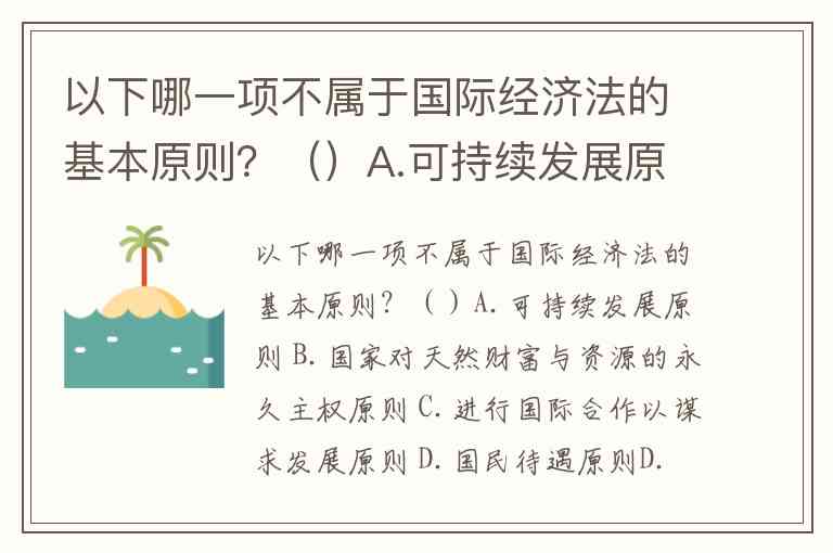以下哪一项不属于国际经济法的基本原则?()A.可持续发展原则 B.国家对天然财富与资源的永久主权原则 C.进行国际合作以谋求发展原则 D.国民待遇原则